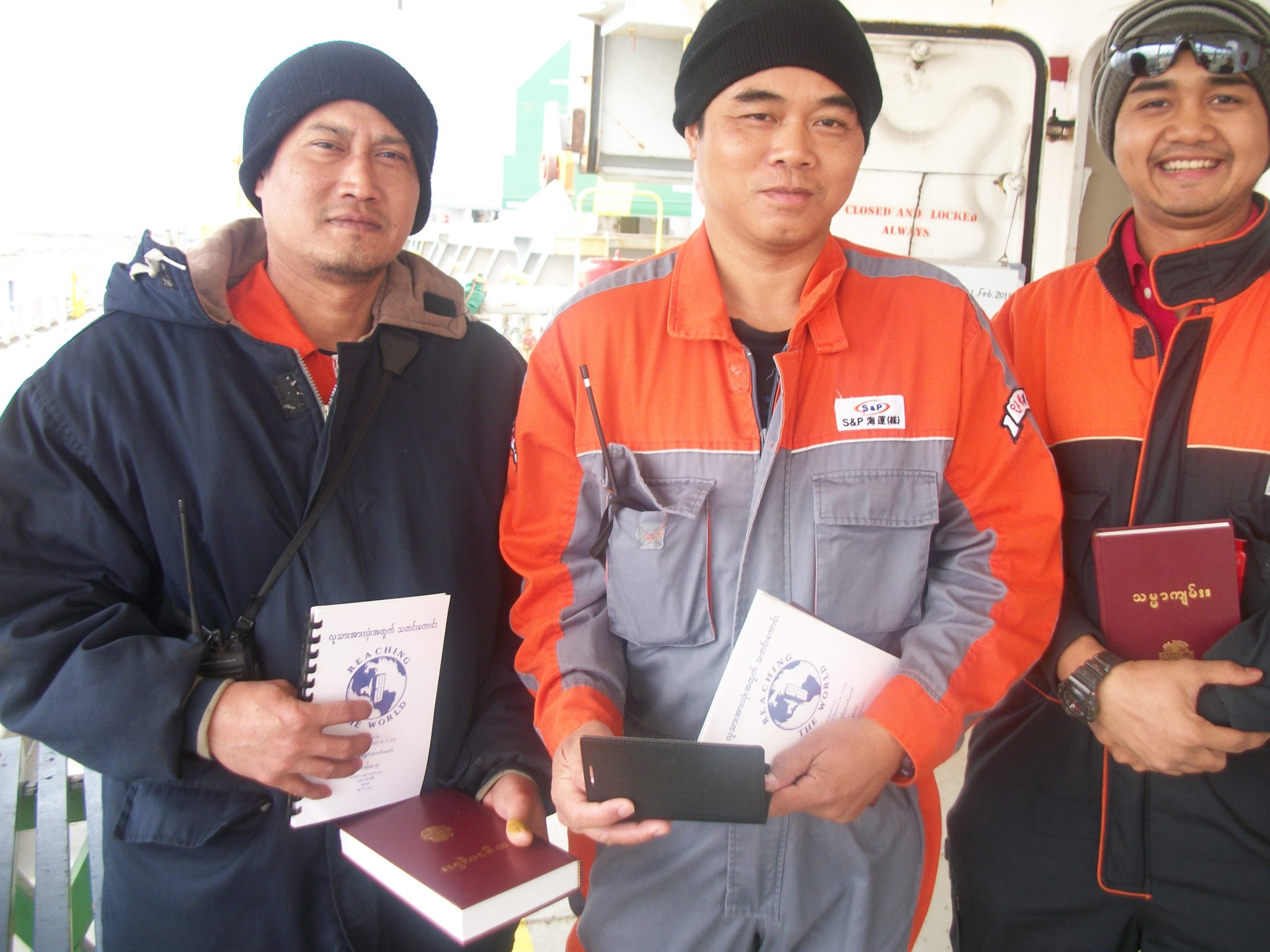 The average time a vessel spends in Port is about three days. Some come and discharge or load their freight in a day. Some stay for a week or more. The more time we can spend with a crew the more effective we can be in seeing results from the Word. It seems these seafarers that have such a rough life, extreme working conditions, and long months away from their families, are soft to the Word of God if it is placed in their hands and hearts with compassion and a love for their soul.